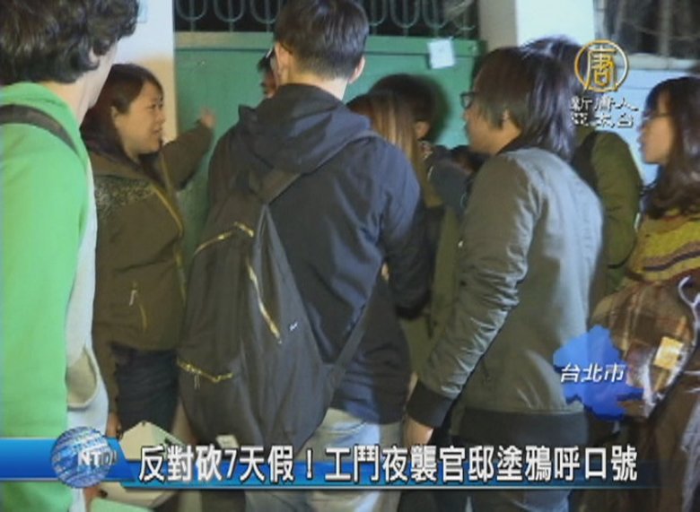 反對砍7天假!工鬥夜襲官邸塗鴉呼口號