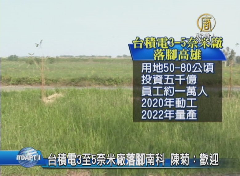 台積電傳出將在南科高雄園區投資新台幣5000億,進行3~5奈米製程計畫,目前正在找地進行評估,預計2020年動工、2022年量產,高雄市長陳菊對此大表歡迎,強調在行政程序上,會努力促成。 //asset2.ntdtv.com.tw/public/uploads/assets/2016/12/07/2016-12-07-58480edea56ab.mp4 台積電|南科|高雄園區|投資|5奈米製程|陳菊2016-12-07 21:25:31