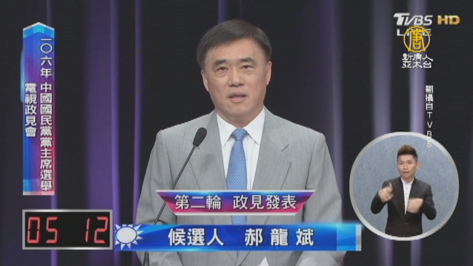 歡迎回來。國民黨今天下午舉行第二場電視政見發表會。洪秀柱在發表政見時高喊自己是台灣人、也是中國人,韓國瑜也強烈反對台獨,吳敦義打出九二共識、一中原則,反對「去蔣化」。郝龍斌則說,國民黨慘敗在於「自私」,更點名吳敦義不該放任國民黨被不當黨產委員會追殺。詹啟賢則說國民黨迷失綁樁固票,黨員更淪為選舉動員工具,在這次黨主席選舉中變本加厲。潘維剛則說,對民進黨治國無方感到失望,才來參選。 //asset1.ntdtv.com.tw/public/uploads/assets/2017/05/06/2017-05-06-590dc3a749519.mp4 國民黨|洪秀柱|韓國瑜|吳敦義|郝龍斌|詹啟賢|潘維剛|國民黨主席2017-05-06 20:36:52