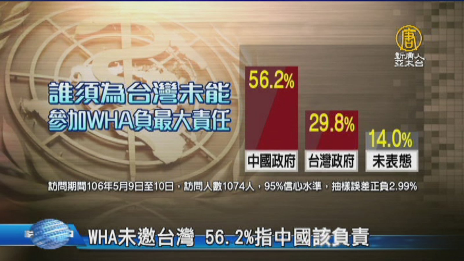 台灣無法參加WHA世界衛生大會,最新民調指出,有56.2%民眾,認為中國要負較大責任,並且有超過70%民眾認為,台灣不該讓步,去接受一中原則的九二共識。 //asset3.ntdtv.com.tw/public/uploads/assets/2017/05/14/2017-05-14-5918530a406c9.mp4 WHA|世界衛生大會|民調|一中原則|九二共識2017-05-15 10:35:30