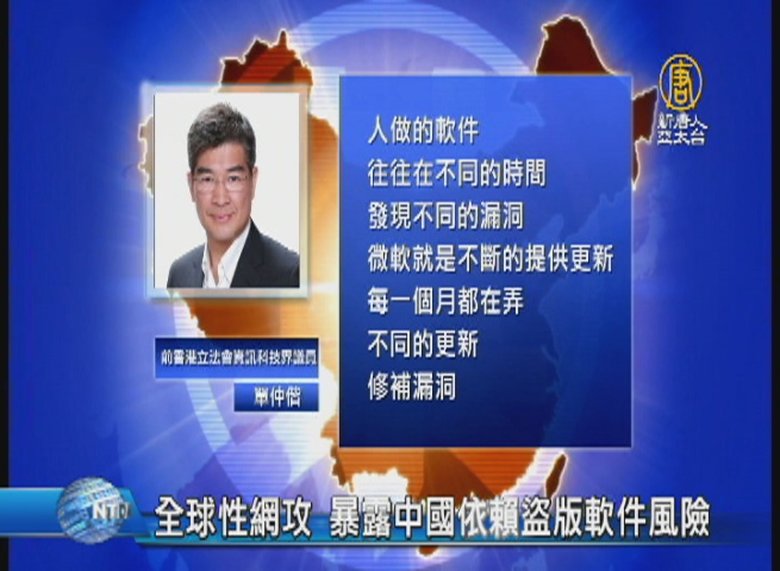 從5月12號開始,全球至少有150個國家,數十萬台電腦受到勒索病毒WannaCry的感染。中國的教育系統及大學院校的網站是這波攻擊的重災區,甚至石油系統、電信、公安等領域的電腦也紛紛中招。專家認為,這與中國軟件 盜版猖獗有關。 //asset1.ntdtv.com.tw/public/uploads/assets/2017/05/18/2017-05-18-591d956bc9d30.mp4 勒索病毒|WannaCry|中國|盜版軟件2017-05-19 11:15:10