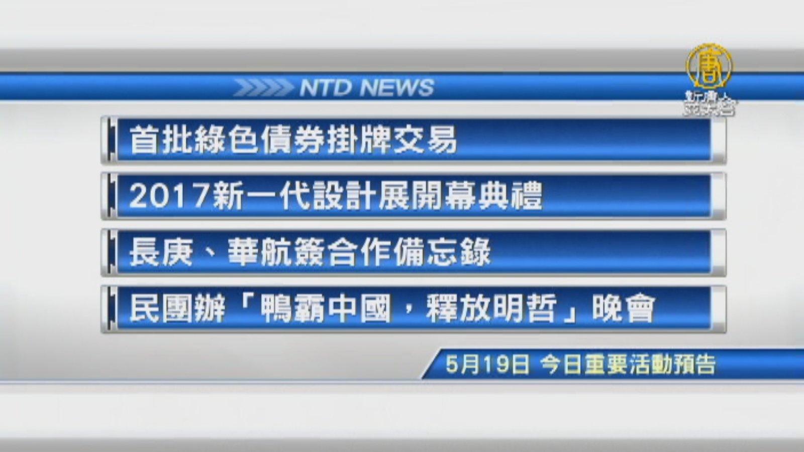 響應蔡政府的「5+2」創新產業,以及全球推動綠色環保經濟趨勢,台灣第一波綠色債券今天正式掛牌交易,共計四檔債券,發行金額將近新台幣60億元規模。 //asset1.ntdtv.com.tw/public/uploads/assets/2017/05/19/2017-05-19-591ee365119ee.mp4 綠色債券|金管會|李瑞倉|綠色金融|永續|5+2產業2017-05-19 20:20:21
