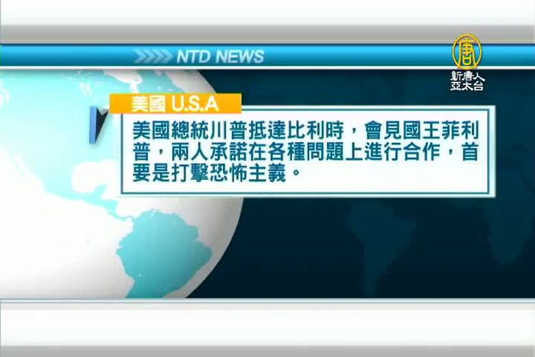 好,再來關心,同樣要去參加G7峰會的,美國總統川普,他首次出訪的第四站,來到比利時,與比利時首相米歇爾進行會談。川普表示,此行他最重要的目標是和各國合作,打擊恐怖主義。 //asset3.ntdtv.com.tw/public/uploads/assets/2017/05/25/2017-05-25-5926cedfaad91.mp4 比利時|川普|美國|反恐2017-05-25 20:31:29