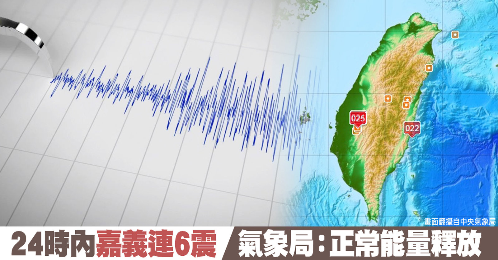 24時內嘉義連6震 氣象局:正常能量釋放