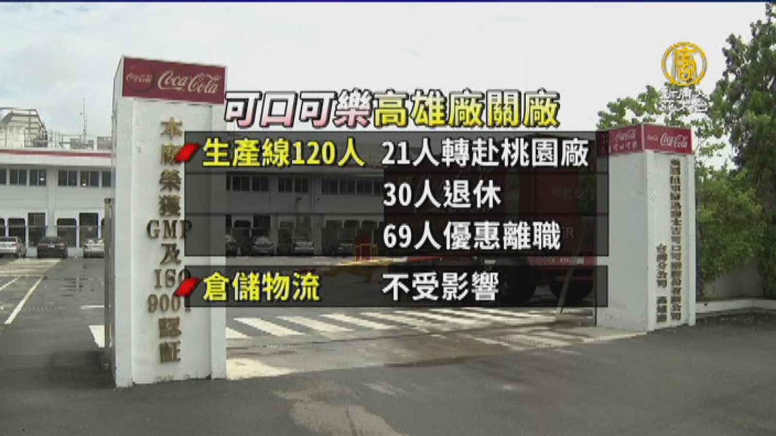 全球吹起飲料減糖風潮,百年歷史的可口可樂受到衝擊,4月美國總部才剛裁員20%,5月立刻延燒到台灣分公司,高雄燕巢的工廠即將關廠賣土地,整併至桃園廠,生產線120名員工受到波及,其中21人同意遷廠,其餘99人選擇退休、優離,等同遭裁員。 //asset1.ntdtv.com.tw/public/uploads/assets/2017/05/25/2017-05-25-5926db4b42c72.mp4 可口可樂|可口可樂裁員|關廠|減糖|勞工局|高雄燕巢2017-05-25 21:20:40
