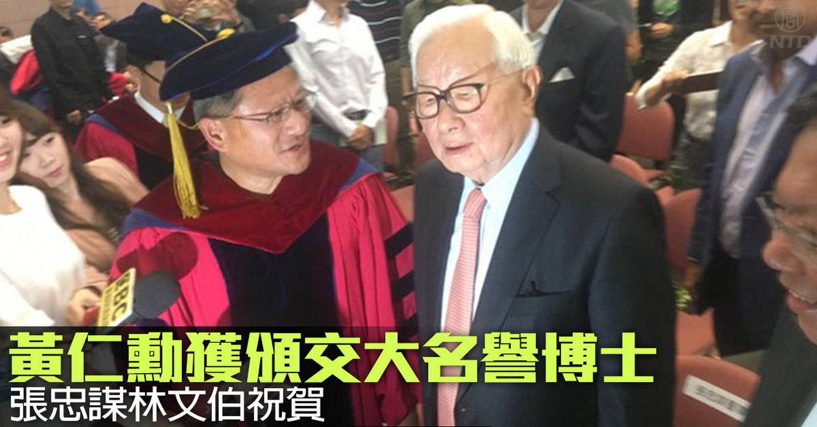 黃仁勳獲頒交大名譽博士 張忠謀林文伯祝賀