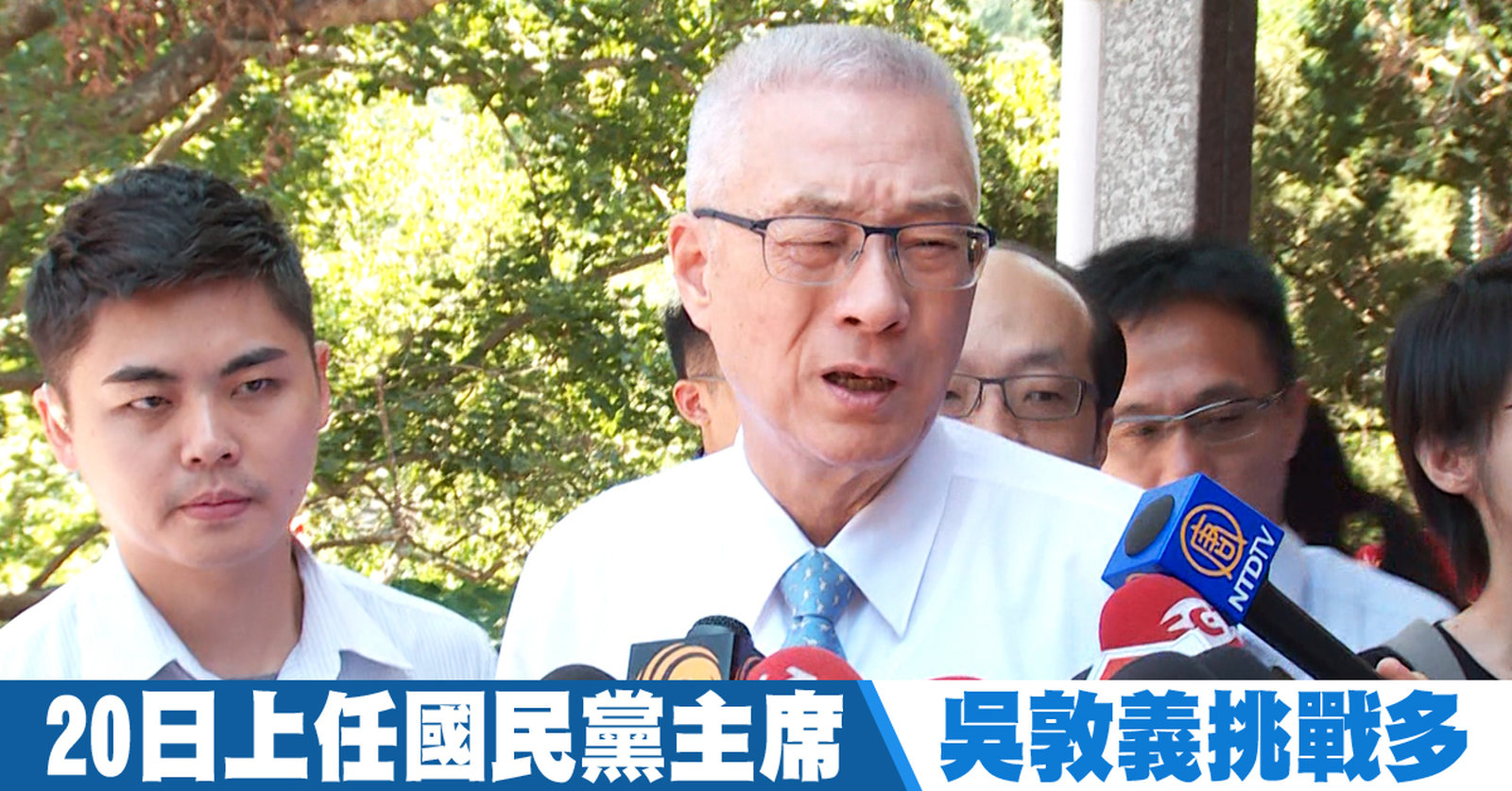 歡迎回來,國民黨主席吳敦義將在8月20號上任。近期他很少有公開行程,但私下卻是行程滿檔。除了佈局2018還有黨內人事,各方考驗都是吳敦義上任之後的難題。 //asset1.ntdtv.com.tw/public/uploads/assets/2017/08/14/2017-08-14-599196a227382.mp4 吳敦義|國民黨2017-08-14 20:22:39
