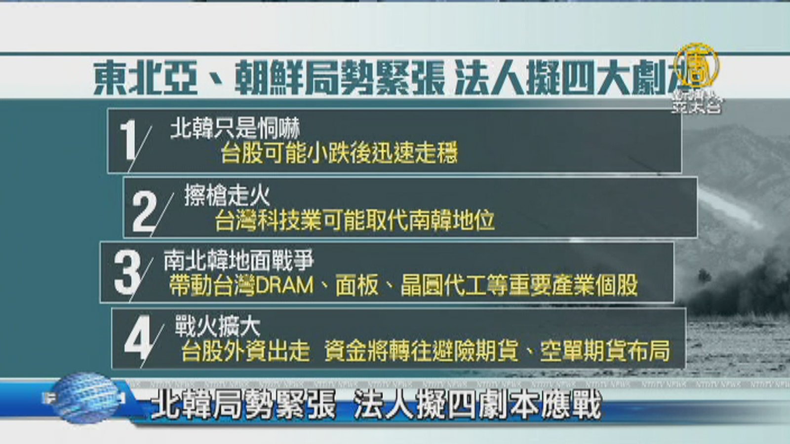 好,就在國際間關注朝鮮緊張局勢的同時,資本市場早已有所動作,包括黃金、日圓,近期來到兩個月以來新高,虛擬貨幣比特幣,報價升破4000美元,創下歷史天價。目前台灣市場,法人研擬四種可能劇本加以因應,分析師認為,包括今天明天的美股市場表現,都是重要觀察的關鍵。 //asset2.ntdtv.com.tw/public/uploads/assets/2017/08/14/2017-08-14-59919345cebed.mp4 朝鮮半導|北韓|金正恩|區域緊張|期貨|避險2017-08-14 20:06:13