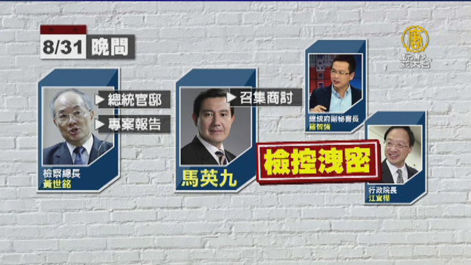 接著看到,前總統馬英九被控教唆前檢察總長黃世銘,向前行政院長江宜樺洩密,遭台北地檢署認定涉及違法洩密起訴,台北地院以憲法第44條,總統具有院際調解權,一審判馬英九無罪,北檢在收到判決後,將依法上訴。 //asset1.ntdtv.com.tw/public/uploads/assets/2017/08/26/2017-08-26-59a16d9b9dc4e.mp4 馬英九|教唆洩密|黃世銘|江宜樺|無罪|柯建銘|帝制2017-08-26 20:43:57