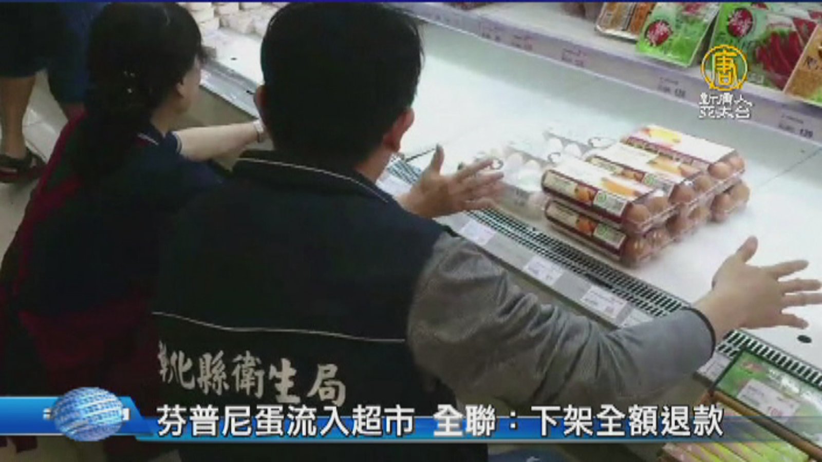 歡迎回來。彰化縣縣內有13家蛋雞場所生產雞蛋驗出芬普尼,可能透過桃園萇 記泰安公司流入全聯福利中心。另外,彰化其中一個受管制的蛋雞場「欣德」畜牧場 的芬普尼毒雞蛋,也疑似流向全聯,彰化縣衛生局表示,已經回報衛福部,並要求縣內的 全聯超市 先行下架 有疑慮的雞蛋。全聯表示,已通知各分店下架,即日起到10月26號,開放民眾憑發票和商品,到原購買門市退換貨。 //asset2.ntdtv.com.tw/public/uploads/assets/2017/08/27/2017-08-27-59a2b85fa8836.mp4 芬普尼蛋|全聯2017-08-27 20:16:18