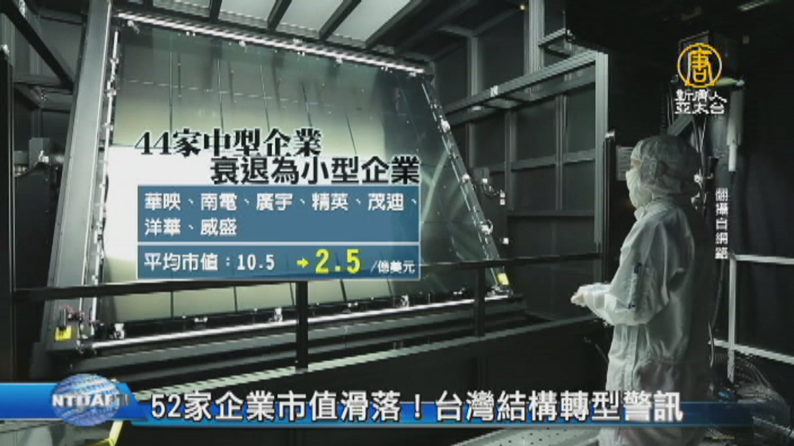 政府力推產業結構轉型,不過,有民間機構調查發現,國內不少企業市值大幅滑落,指標企業包括 宏達電、宏基、聯電等大型企業,衰退為「中型企業」,而華映、茂迪、威盛,則成為末段班的「小型企業」,總計52家企業,面臨衰退困境。 //asset2.ntdtv.com.tw/public/uploads/assets/2017/08/28/2017-08-28-59a40a1359ace.mp4 企業轉型|結構轉型|宏達電|台灣董事學會2017-08-28 20:16:53