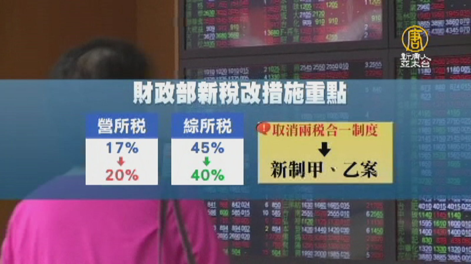 再來看到,小英政府年度重要政策草案出爐,財政部正式公布稅改草案細項,包括實施了19年的兩稅合一將走入歷史,取而代之,股利所得,預計從新版的甲、乙兩案中選擇,此外占多數的薪資所得報稅者,綜合所得稅率也大幅調降。 //asset2.ntdtv.com.tw/public/uploads/assets/2017/09/01/2017-09-01-59a95e283f0e5.mp4 稅改|報稅|許虞哲|財政部|股利所得|兩稅合一|內資外資2017-09-01 21:18:41