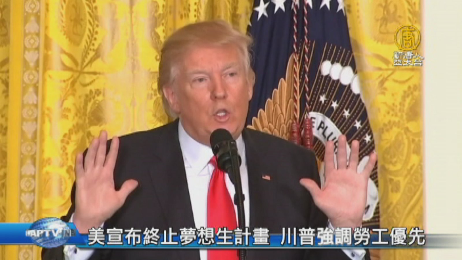 週二,川普政府正式宣布廢止「夢想生計劃」,但這一政策將延緩6個月執行,為的是把時間留給國會進行立法,讓「夢想生」的身份問題,能獲得永久性的解決方案。 //asset3.ntdtv.com.tw/public/uploads/assets/2017/09/06/2017-09-06-59aff4c717e1c.mp4 移民法|美國|夢想生計劃|川普|非法入境2017-09-06 21:14:53