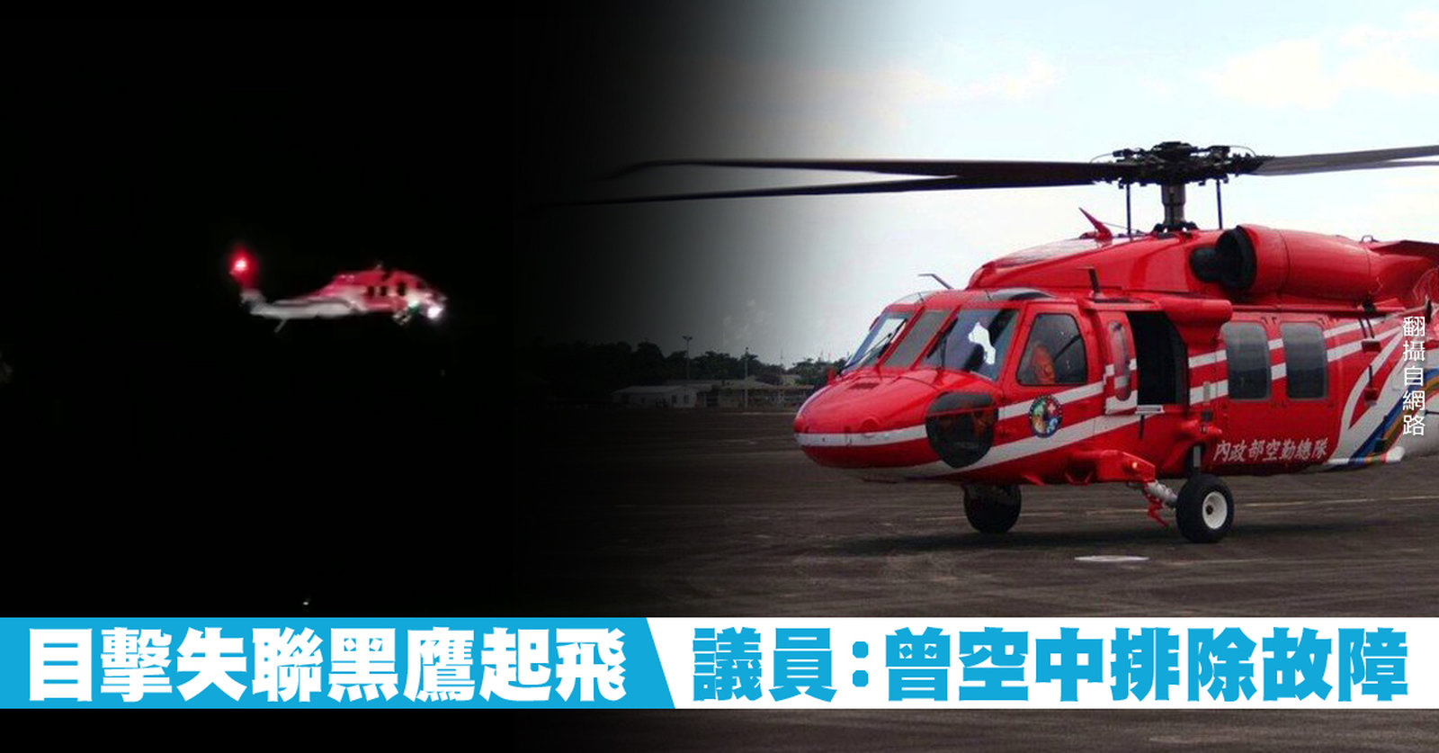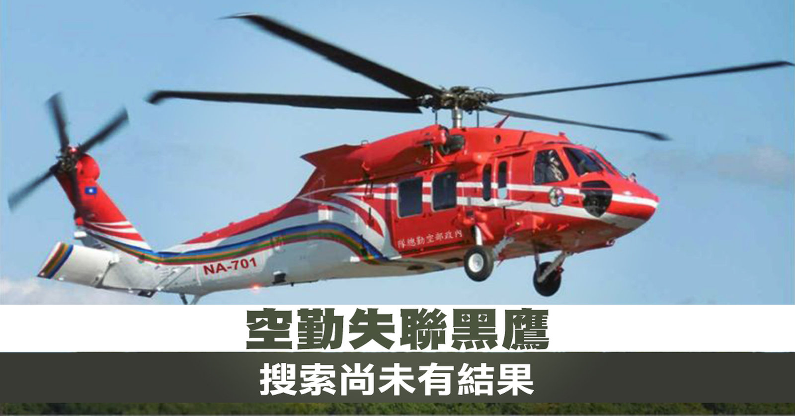 新聞一開始,馬上帶您看到,昨天(5日)晚間,空勤總隊一架黑鷹直昇機,在蘭嶼飛往台東後送病患時,卻在起飛沒多久就失聯。機上包括正副駕駛、病患、家屬、護理人員總共六人。搜救工作持續進行當中,不過到晚間,都還沒有發現失聯的直昇機。 //asset2.ntdtv.com.tw/public/uploads/assets/2018/02/06/2018-02-06-5a799b538d337.mp4 空勤總隊|黑鷹直昇機2018-02-06 21:25:55