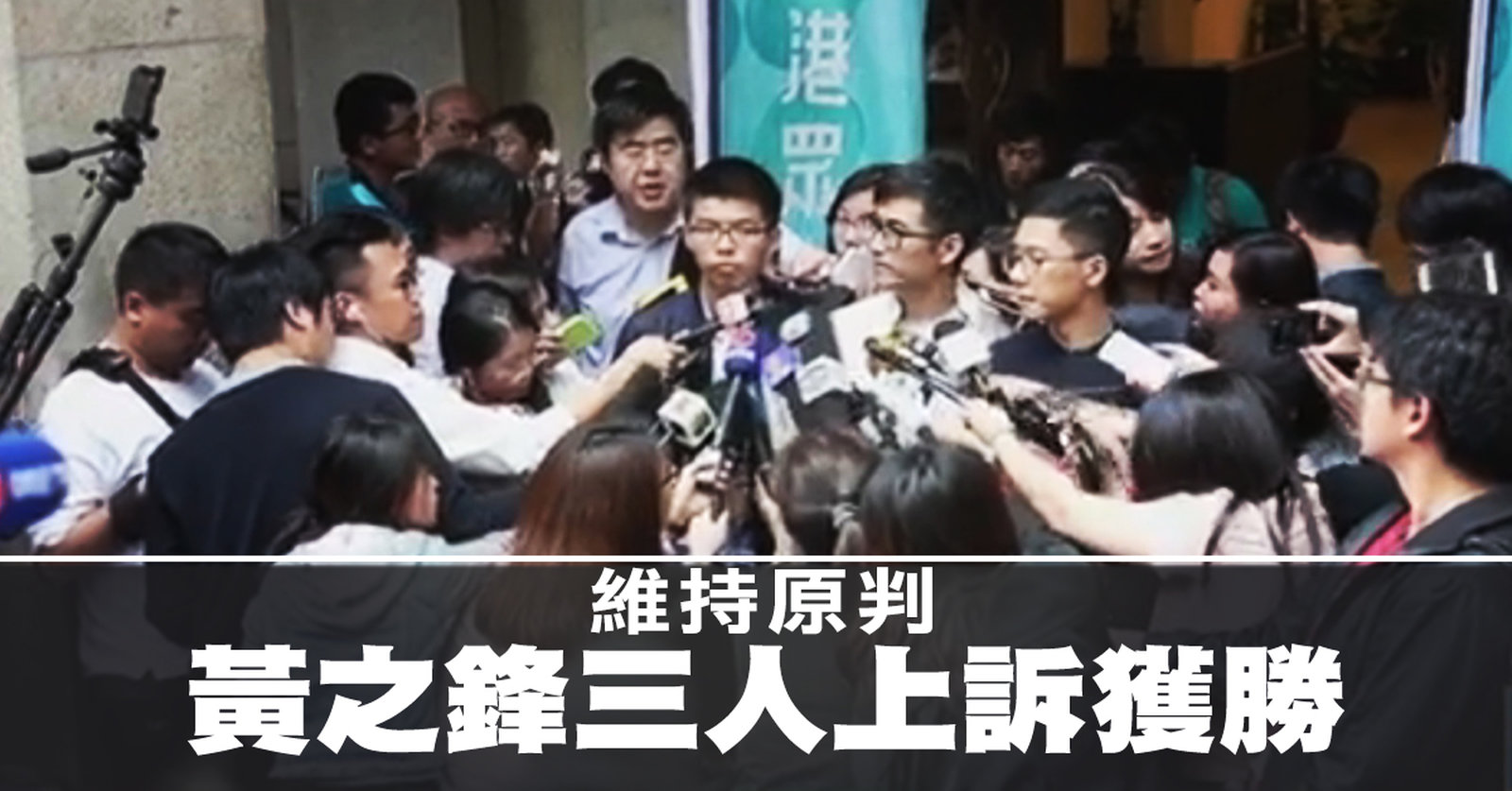 不用再入獄!黃之鋒三人上訴獲勝 維持原判