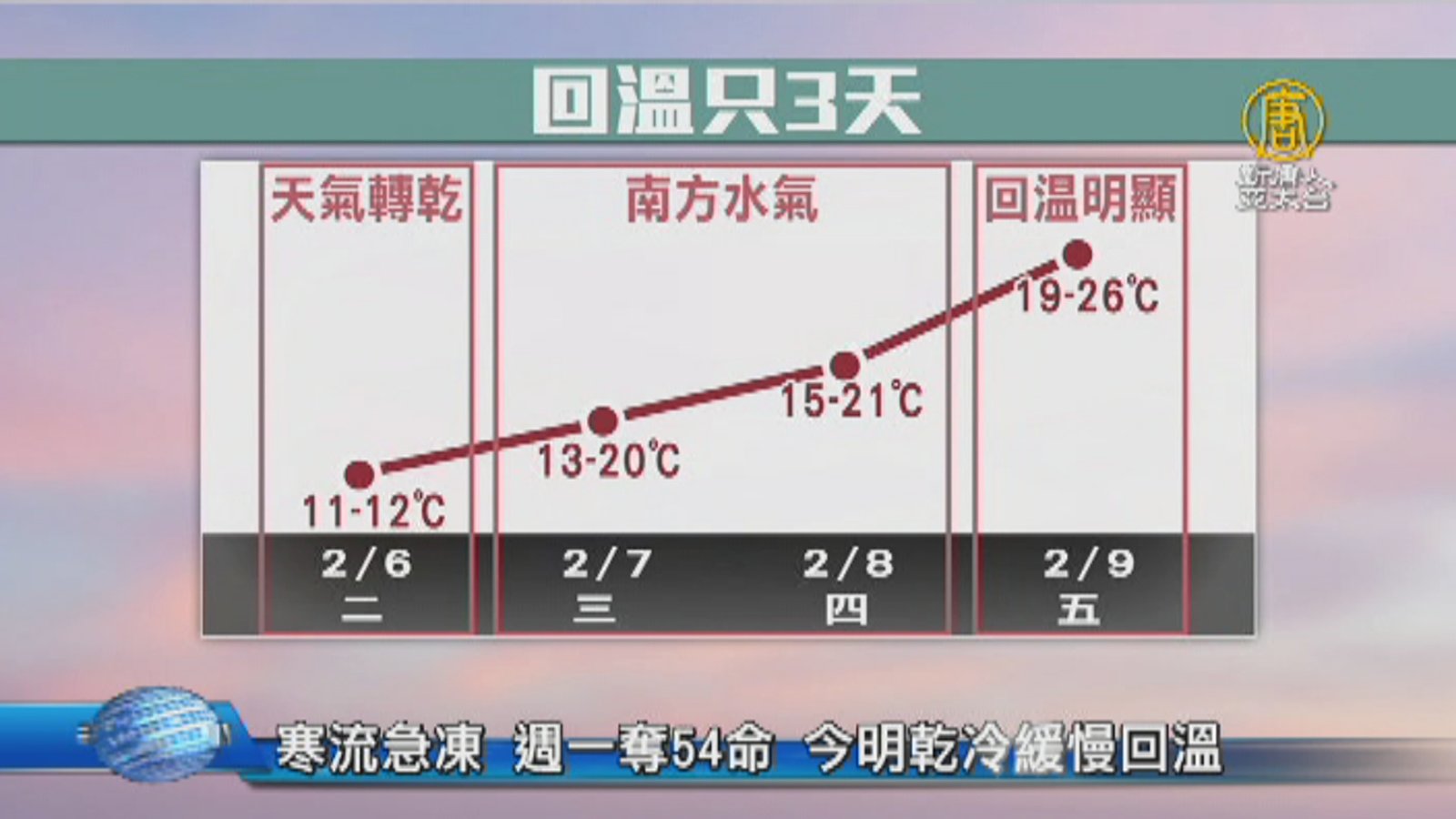 寒流急凍 週一奪54命 今明乾冷緩慢回溫