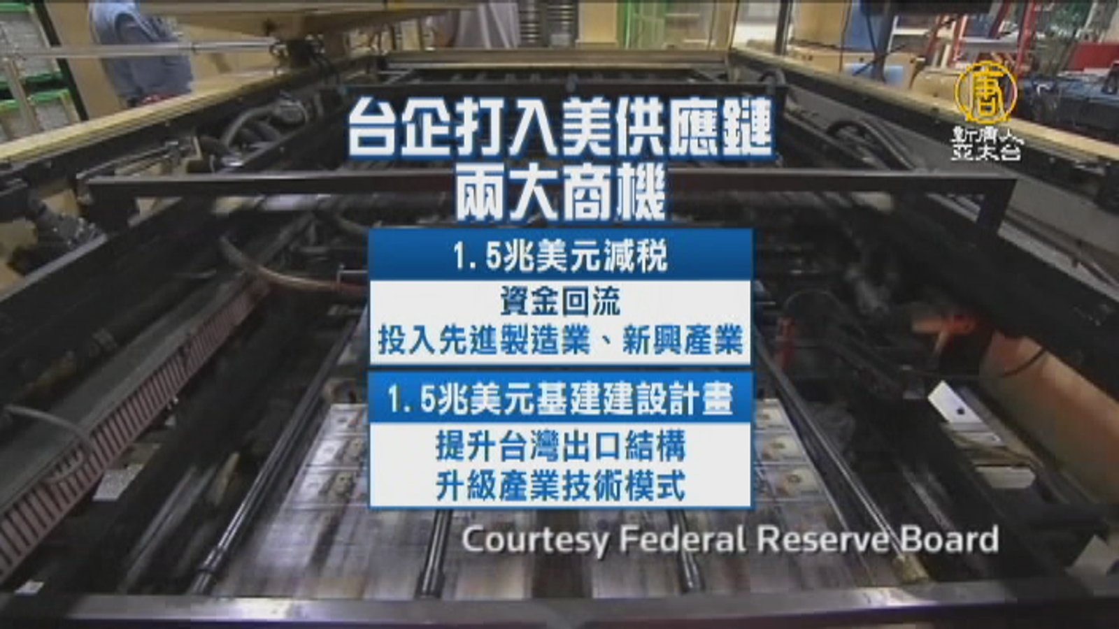 美國川普稅改,影響全球經濟,帶動高科技產業板塊挪移。現代財經基金會今天舉辦論壇,學者建言,台灣投資美國,應加強鏈結先進製造業、引入新興產業模式,藉此升級台灣產業、轉變經濟結構,繼續領先東南亞與中國,台灣才有機會。 //asset3.ntdtv.com.tw/public/uploads/assets/2018/02/04/2018-02-04-5a7aae31af985.mp4 川普稅改|先進製造|產業升級|台美合作|減稅|美中貿易2018-02-07 12:09:05