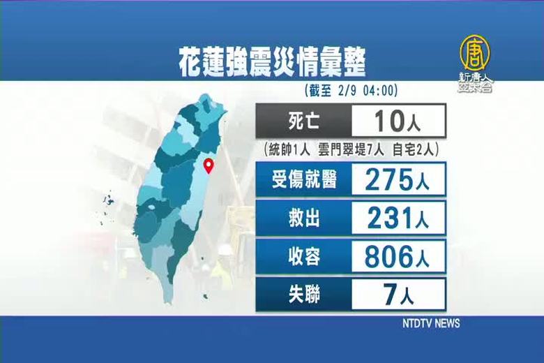 好,再來看到,花蓮發生規模6.0強震後,雲翠大樓現場搶救進入第三天,失聯人數還有5人,是從北京來台旅遊的1家5口,搜救人員以機具、徒手開挖方式,往一家五口所住的201號房挺進,僅剩下4公尺的距離。馬上連線給現場的記者,詠茹。 //asset2.ntdtv.com.tw/public/uploads/assets/2018/02/09/2018-02-09-5a7d913641161.mp4 花蓮強震|雲翠大樓|搜救|陸客2018-02-09 22:09:30