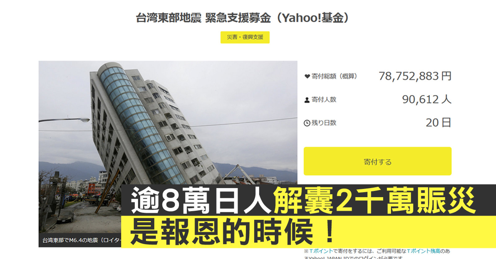 是報恩的時候!逾8萬日人解囊2千萬賑災