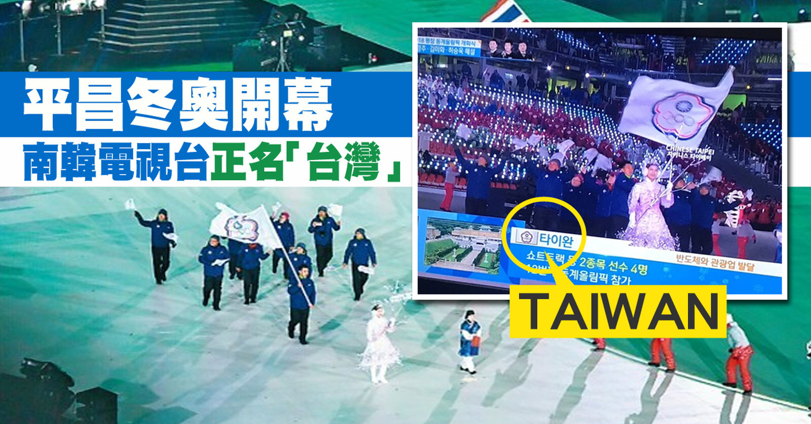平昌冬奧開幕 南韓電視台正名「台灣」