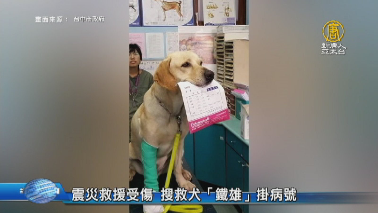 震災救援受傷 搜救犬「鐵雄」掛病號