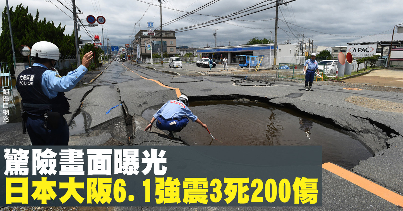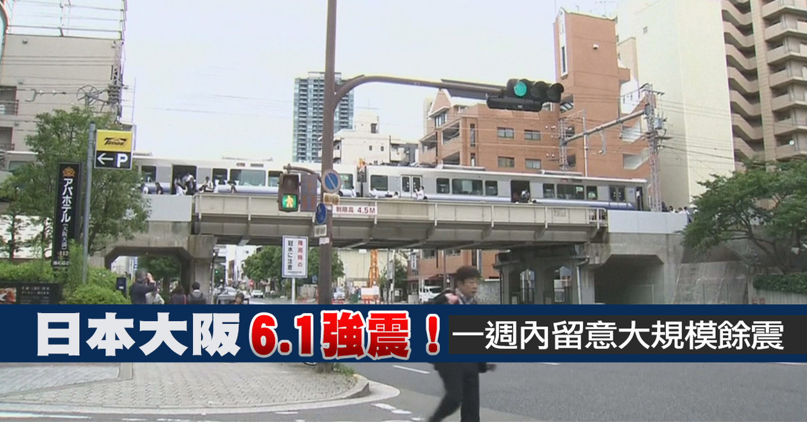 新聞首先來看到,今天早上,日本大阪在當地時間7點58分,發生規模6.1的淺層強震,目前已經造成3死234人受傷,日本政府指示全力救災,地震專家說,未來一個星期都要留意,可能會有同等規模的強烈餘震。 //asset1.ntdtv.com.tw/public/uploads/assets/2018/06/18/2018-06-18-5b27a158662da.mp4 日本|大板|地震|土石流|停電|停水|核電廠2018-06-18 21:02:37