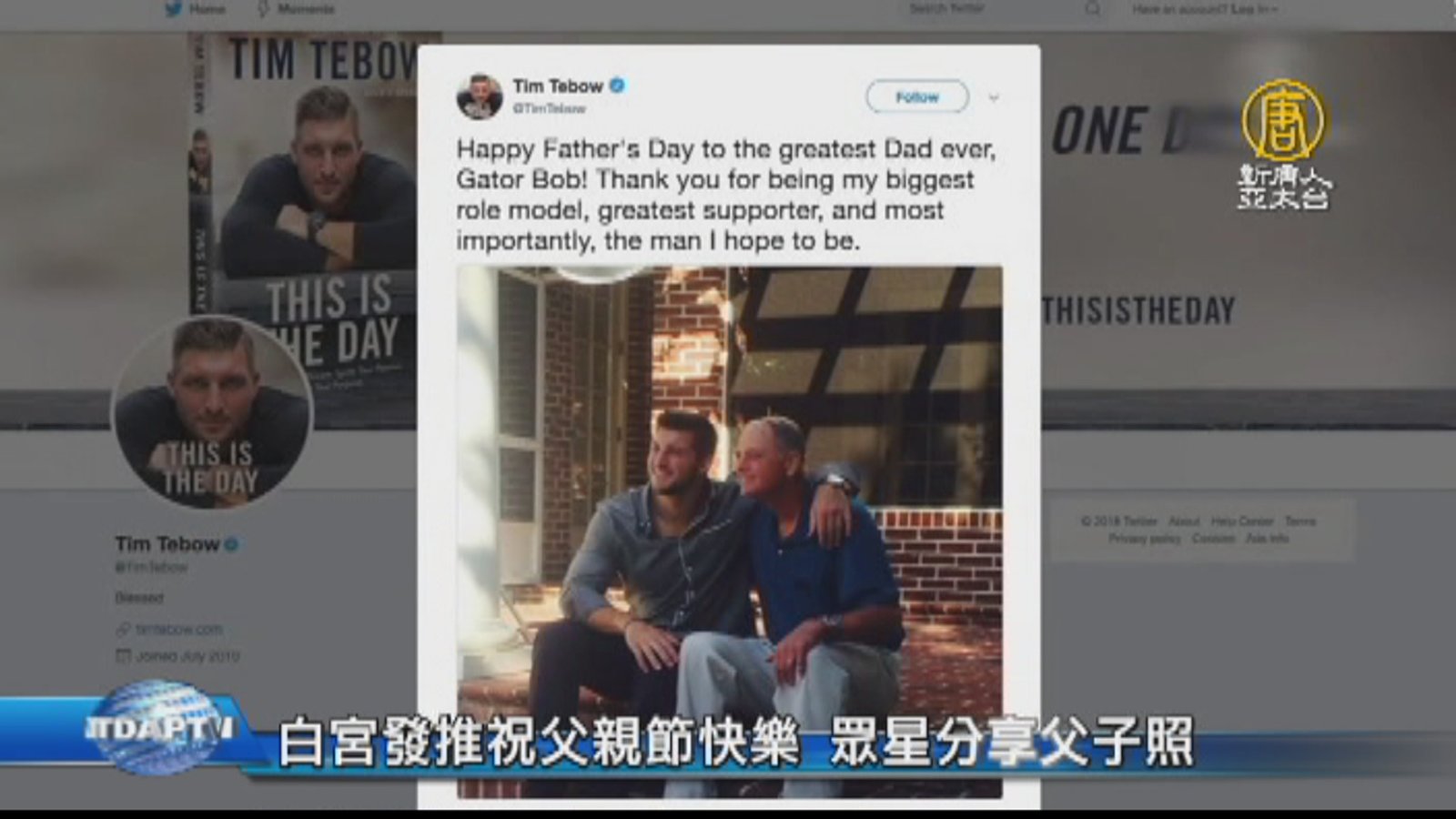 好,華人過端午節的同時,每年六月的第三個星期天,是美國的父親節,包括美國總統川普和副總統彭斯,都發推文祝父親節快樂,也帶您來看看美國明星們,怎樣慶祝父親節。 //asset2.ntdtv.com.tw/public/uploads/assets/2018/06/18/2018-06-18-5b27a96895353.mp4 父親節2018-06-18 20:41:59