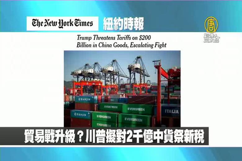 好,蔡英文總統針對美中貿易衝突,召開國安會議,而,美國白宮昨天,則是再添火力,發布一份報告,認為中共對全球進行經濟侵略。報告說,中國快速的經濟成長,主要是透過在全球規範與規則之外的經濟侵略。目前,如果中共繼續堅持不公平貿易的做法,美國將再對2千億中國產品,來加稅。白宮顧問還透露,中共損失,會比美國大。 //asset1.ntdtv.com.tw/public/uploads/assets/2018/06/20/2018-06-20-5b2a44a356d94.mp4 川普|中國進口商品|關稅|美中貿易戰2018-06-20 21:02:42