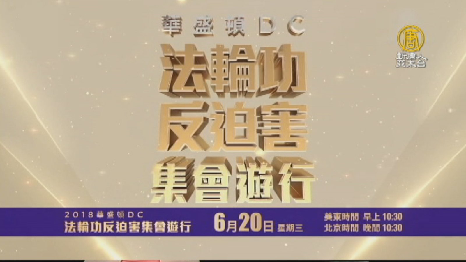 再來看到,今天(20日),全球部分法輪功學員聚集在美國首府華盛頓DC,舉行反迫害集會遊行,各界正義人士到場聲援,本台也將同步進行現場直播。好,來看到,多位身穿黃衣白帽的法輪功學員,昨天,先在中共駐美大使館外靜坐,訴求和平反迫害。而在今天,台北時間晚上10點半,美國國會山莊前,有一場大型集會,多位美國國會議員、人權及宗教自由組織代表,將到場演講,聲援法輪功學員,新唐人將提供直播,並且全程中文同聲翻譯。之後就是兩個小時,全程共2.4英里,的反迫害大遊行。 //asset3.ntdtv.com.tw/public/uploads/assets/2018/06/20/2018-06-20-5b2a54ca20627.mp4 法輪功反迫害|法輪功|人權|國會山莊|大使館2018-06-20 21:21:24