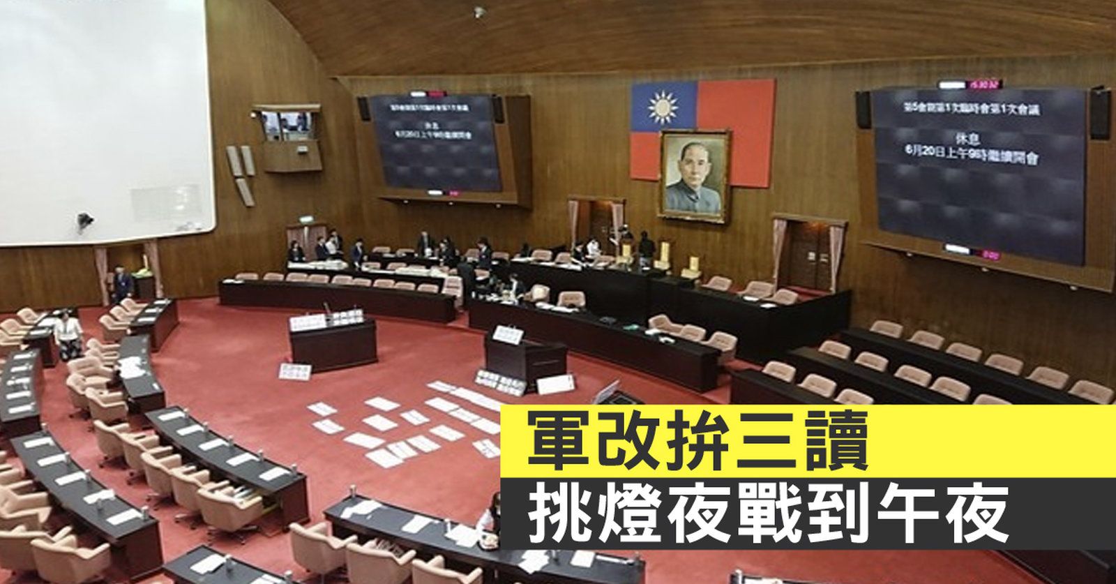 軍人年改法案,預計今天(20日)完成三讀,反年改八百壯士持續在立法院外抗爭。而在立法院內,民進黨團不排除挑燈夜戰,表決法案,國民黨團今天一早則是佔據主席台,發生零星推擠。 //asset2.ntdtv.com.tw/public/uploads/assets/2018/06/20/2018-06-20-5b2a54ff41778.mp4 軍改|反年改|八百壯士|立法院2018-06-20 21:22:17