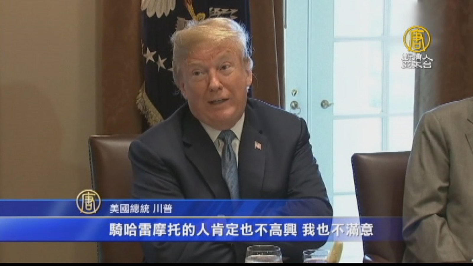 再來關心,美國著名的哈雷機車公司宣布,因為歐盟反擊美國,徵收報復性高關稅,所以要出走,往海外發展,不過,這樣的理由,讓美國總統川普很不滿,強調企業回遷美國,才是潮流。 //asset2.ntdtv.com.tw/public/uploads/assets/2018/06/27/2018-06-27-5b338002016ca.mp4 哈雷|鋼鐵稅|哈雷出走|關稅|川普2018-06-27 20:12:33