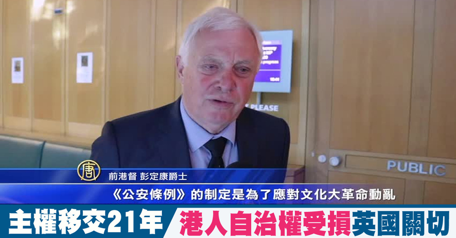 香港主權移交21年,「末代港督」彭定康,7月3號出席「香港監察」組織,在英國國會舉辦的研討活動。他在演說中指出,香港的自治和法治,都正在受到侵蝕。 //asset1.ntdtv.com.tw/public/uploads/assets/2018/07/03/2018-07-03-5b3f860323047.mp4 香港主權移交|21年|彭定康|香港監察|自治權|法治2018-07-06 21:27:12