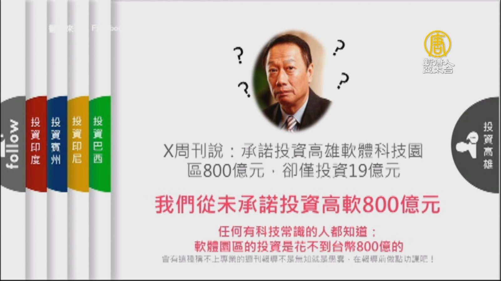 郭台銘否認投資高軟800億 韓:沒談阿拉伯數字