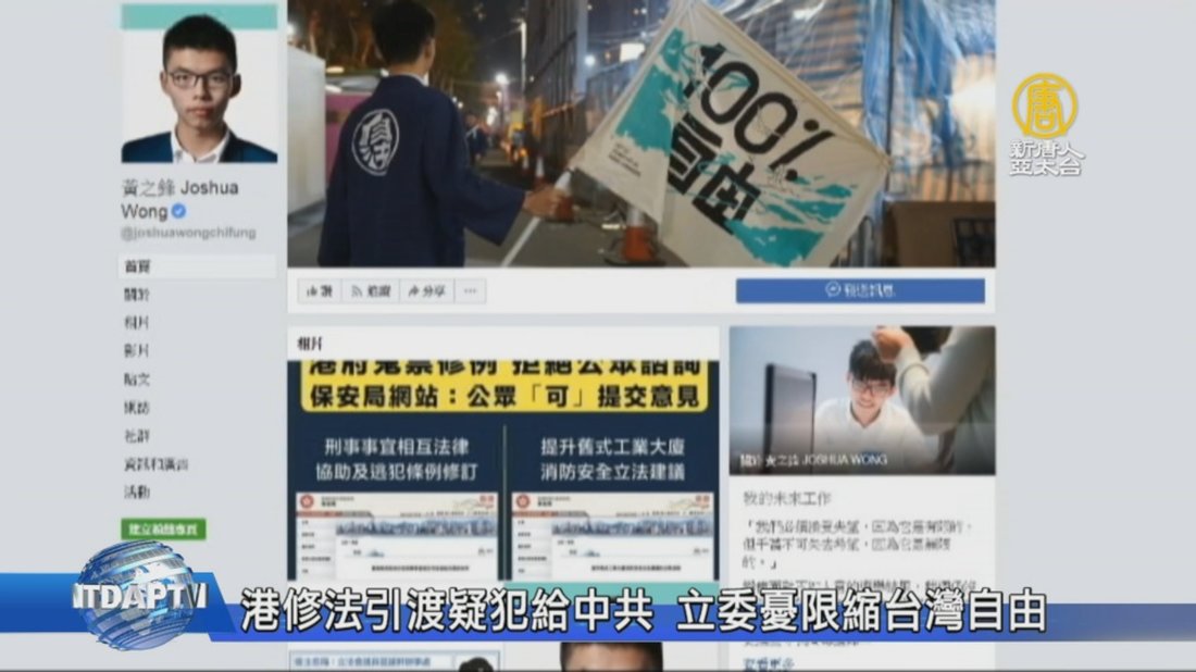 香港政府日前提出修訂《逃犯條例》和《刑事事宜相互法律協助條例》,讓引渡疑犯的程序,可適用於中國大陸、澳門和台灣。不過,香港眾志秘書長黃之鋒警告,如果這次修法沒有排除中國大陸,未來可能出現更多「李明哲」。時代力量立委徐永明今天在立法院質詢法務部,這是否會限縮台灣人言論自由? //asset3.ntdtv.com.tw/public/uploads/assets/2019/02/19/2019-02-19-5c6c055cd04e9.mp4 香港|逃犯條例|立院|法務部|徐永明|黃之鋒|香港轉機2019-04-29 16:15:31