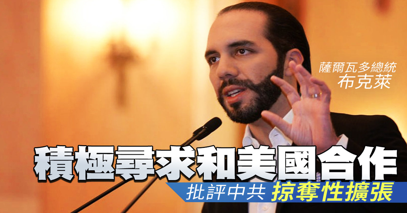好的再來看到,去年八月,中美洲的國家薩爾瓦多宣布與台灣斷交,跟中共建交,不過近日選出來的新任總統布格磊,則是要重新調查薩國跟中國的建交原因,同時在這個禮拜,與美國討論如何加強合作,來應對中共掠奪性的擴張。 //asset2.ntdtv.com.tw/public/uploads/assets/2019/02/19/2019-02-19-5c6c058f99078.mp4 薩爾瓦多|布克磊|美國|台灣|邦交2020-06-18 12:34:19