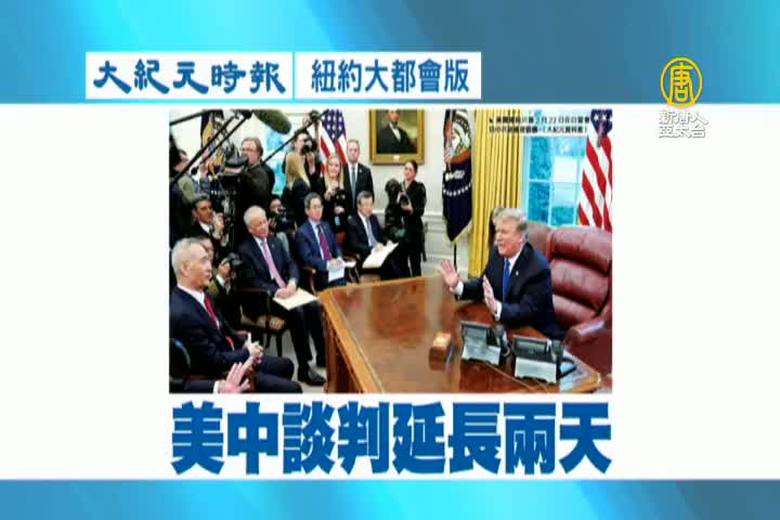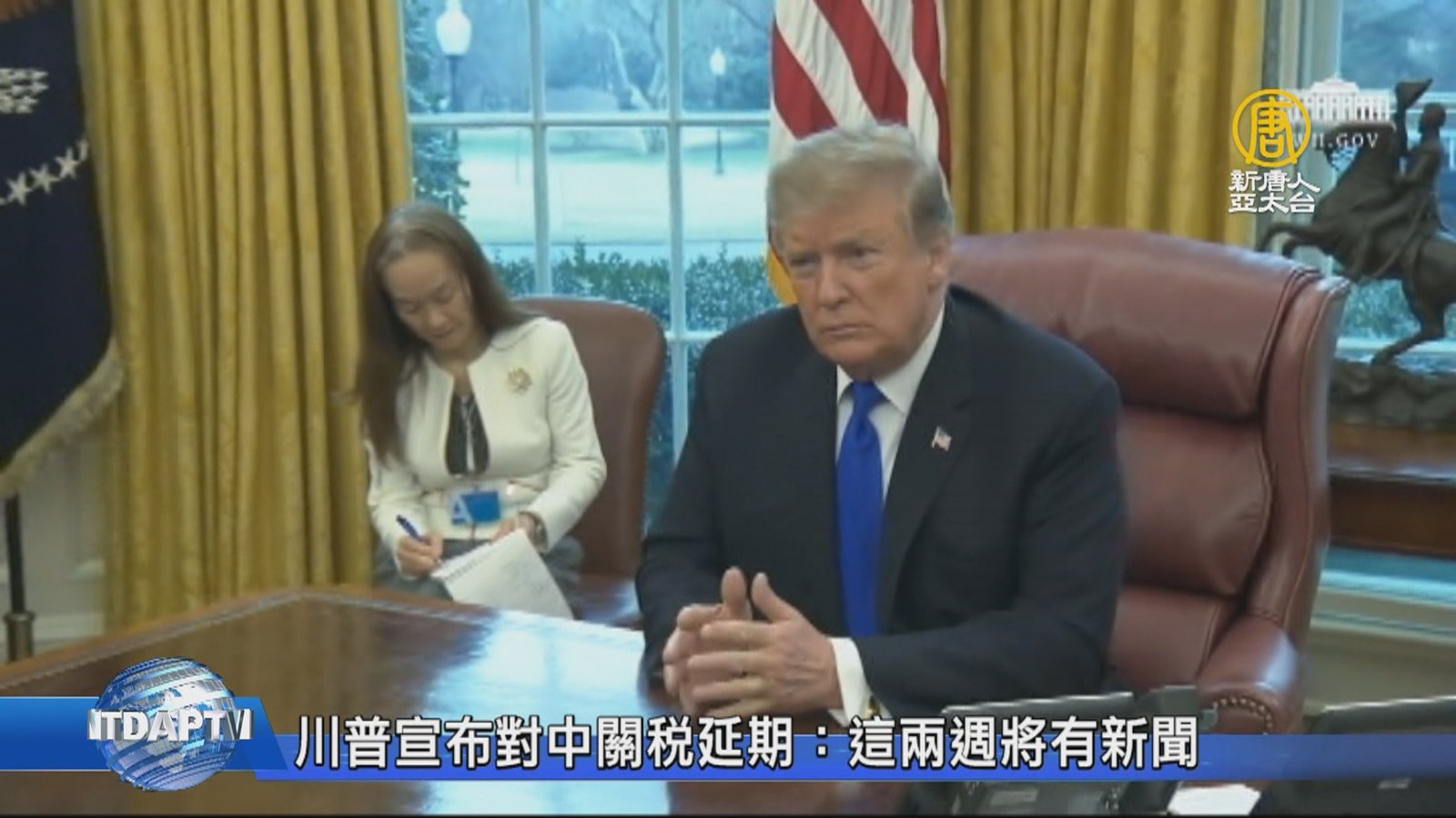 新聞一開始,帶您鎖定,美中貿易談判最新進度,美中休兵90天,原本預定在3月1日,這個禮拜五就要到期,不過今天,美國總統川普宣布,因為雙方貿易談判有進展,將延後對中國商品加關稅,這兩周將會有重大消息。 //asset1.ntdtv.com.tw/public/uploads/assets/2019/02/25/2019-02-25-5c73da636c546.mp4 美中貿易戰|川普|海湖莊園2019-02-25 20:33:06