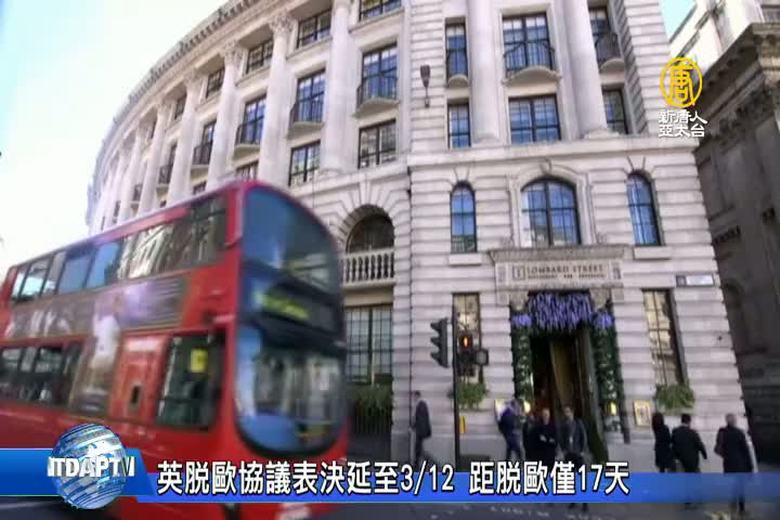 接著來關心英國脫歐的最新進展。英國首相梅伊昨天再次延後脫歐協議的國會表決。從原定這個月的27號,延後到3月12號,距離脫歐日期3月29號,僅僅17天。外媒報導,歐盟考慮將英國脫歐,延到2021年。 //asset2.ntdtv.com.tw/public/uploads/assets/2019/02/25/2019-02-25-5c73e5b397694.mp4 英國脫歐|梅伊2019-02-25 20:49:04