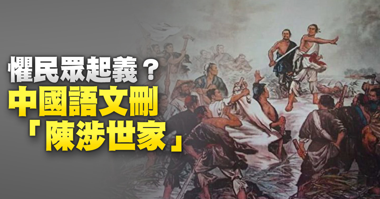 再來看到,大陸網友最近發現,中共教育部組織編寫的最新版初中三年級教材,刪除了《史記》記載的「陳涉世家」,這篇已經寫入中國初中課本近60年的課文,是描述中國歷史上第一次農民起義,引發輿論關注,有評論認為,是中共擔心民眾效仿陳勝、吳廣起義,推翻中共政權。 //asset3.ntdtv.com.tw/public/uploads/assets/2019/02/25/2019-02-25-5c73ee3347ba2.mp4 陳涉世家|陳勝|吳廣2019-02-25 21:22:21