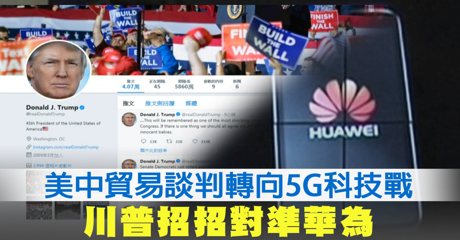 美中貿易談判轉向5G科技戰 川普招招對準華為