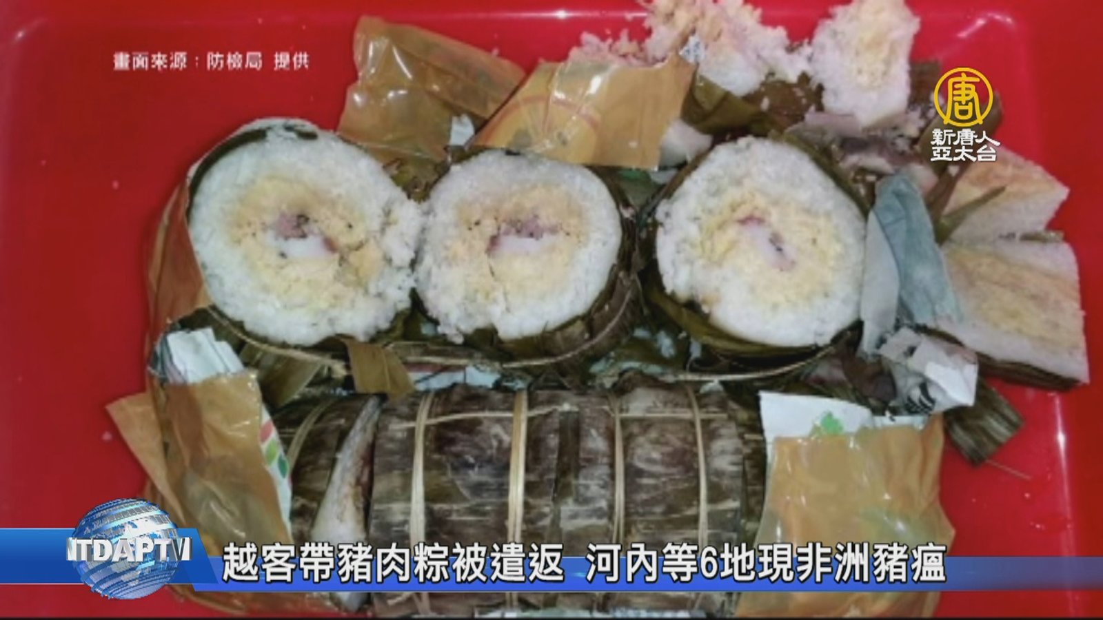 歡迎回來。關心非洲豬瘟防疫,二二八連假期間,出現首例越南籍旅客攜帶豬肉製品來台,2月27日當天,一名越南56歲女性,攜帶2個越南肉粽共1.36公斤來台灣探親,但是肉粽裡面含有豬肉,當場被罰20萬元,但因沒有繳清罰鍰被拒絕入境,當晚遣返回越南。目前越南的非洲豬瘟疫情繼續升溫,至今在越南北部5省市和中部1省共6省市發現病例,數千頭豬被迫撲殺,疫區包括首都河內市和北方最大港海防市。 //asset2.ntdtv.com.tw/public/uploads/assets/2019/03/01/2019-03-01-5c79297fcedce.mp4 非洲豬瘟|越南肉粽|越南|遣返|二二八連假|河內|海防2019-03-01 20:44:24