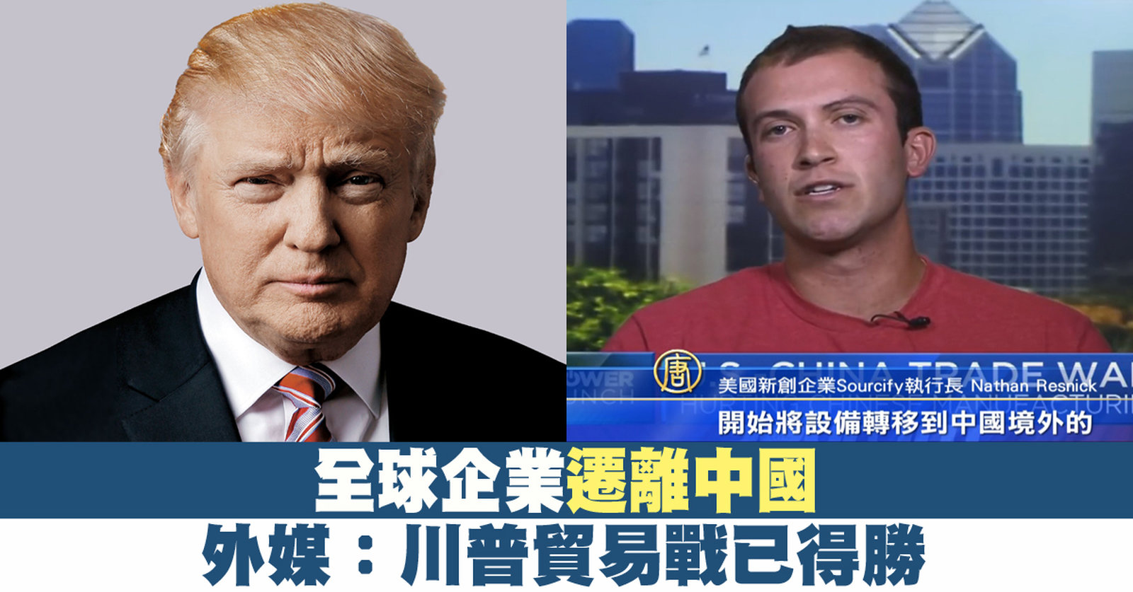 全球企業遷離中國 外媒:川普貿易戰已得勝