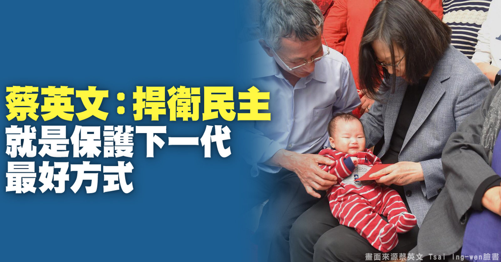 蔡英文:捍衛民主就是保護下一代最好方式
