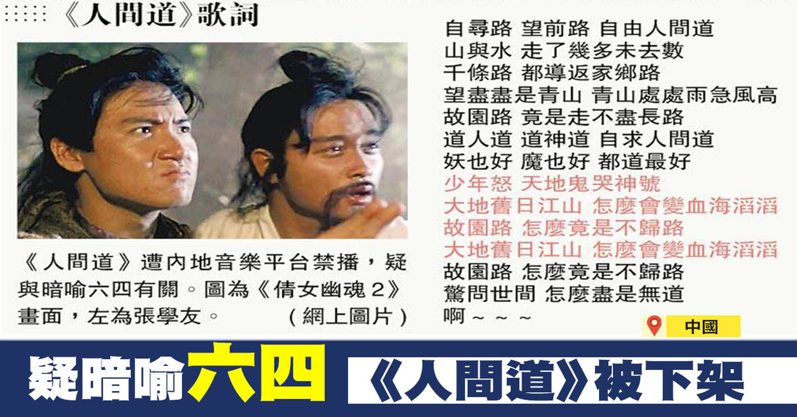 疑暗喻六四 張學友經典歌《人間道 》大陸下架