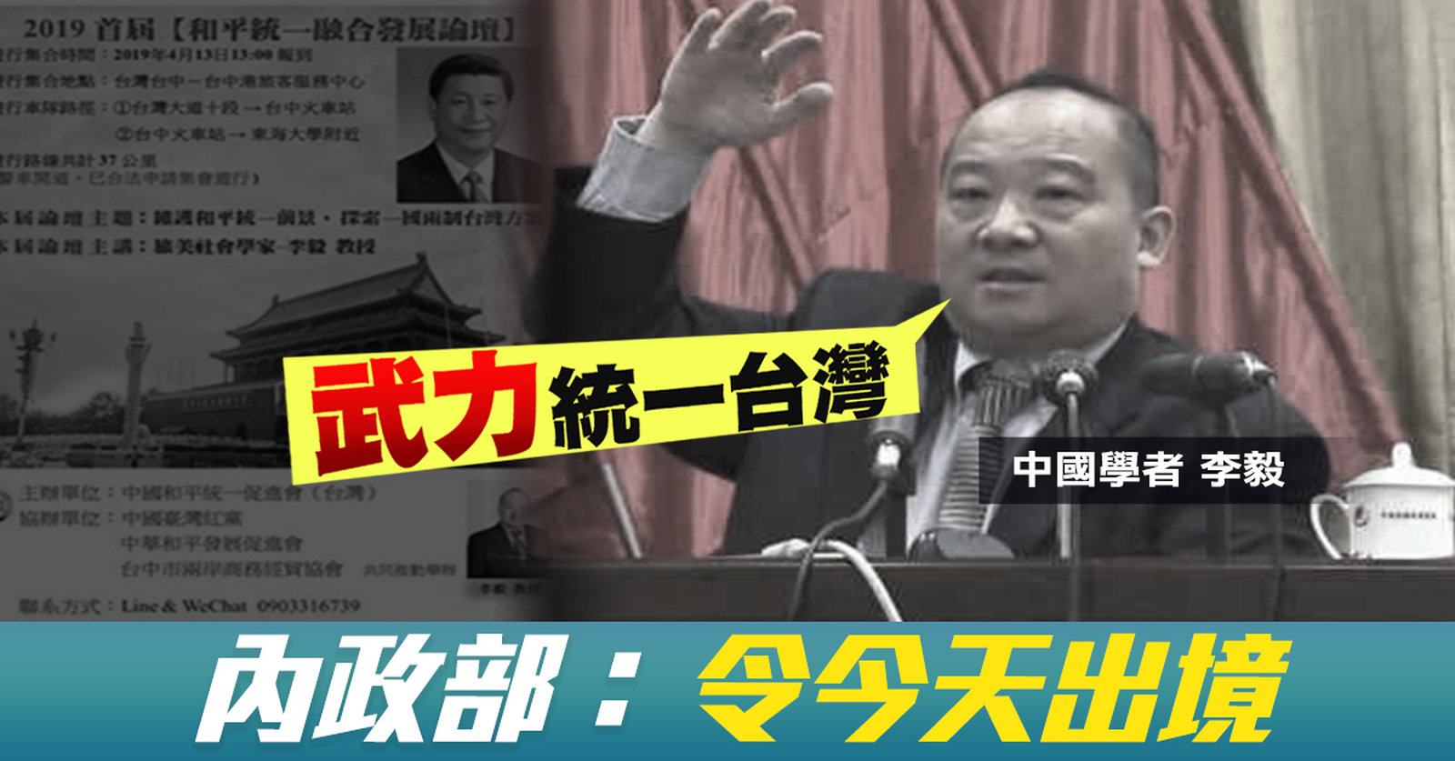 武統論學者李毅訪台 內政部:令今天出境