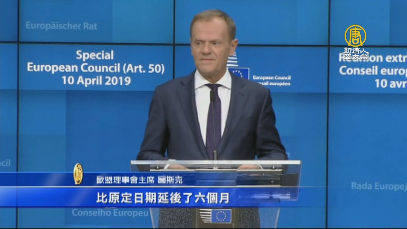 歡迎回來,國際重要訊息,帶您關心,眼看英國就要在4月12日無協議脫歐,歐盟27個成員國,昨天(10日)在比利時布魯塞爾舉行緊急峰會,經過5小時的討論,最後歐盟同意把英國脫歐期限展延到10月31日,也就是今年萬聖節前,再給英國6個月時間尋找可能解決方案,歐盟理事會主席圖斯克,呼籲英國把握機會,不要再浪費時間。 //asset1.ntdtv.com.tw/public/uploads/assets/2019/04/11/2019-04-11-5caf36b05db1b.mp4 英國脫歐|歐盟|脫歐|梅伊|圖斯克2019-04-11 20:40:00