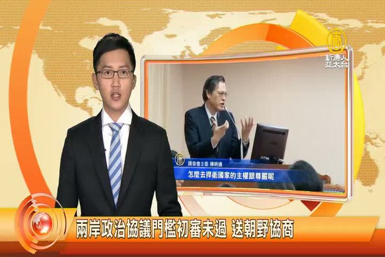 好,立院初審兩岸政治協議需要國會雙審議,法案是全案保留送朝野協商。民團則在立法院外提出三點訴求,強調中華民國的主權,及民主憲政秩序不容談判。除了兩岸人民關係條例修正草案正在推動,明天院會的朝野黨團協商,將處理立委王定宇提出的《刑法》草案,明定將中共政權列為「敵人」,就可以把共諜案納入內亂外患罪。 //asset1.ntdtv.com.tw/public/uploads/assets/2019/04/22/2019-04-22-5cbdb17c28694.mp4 政治談判|兩岸|和平協議|立法院|民團|中華民國|主權2019-04-22 20:17:40