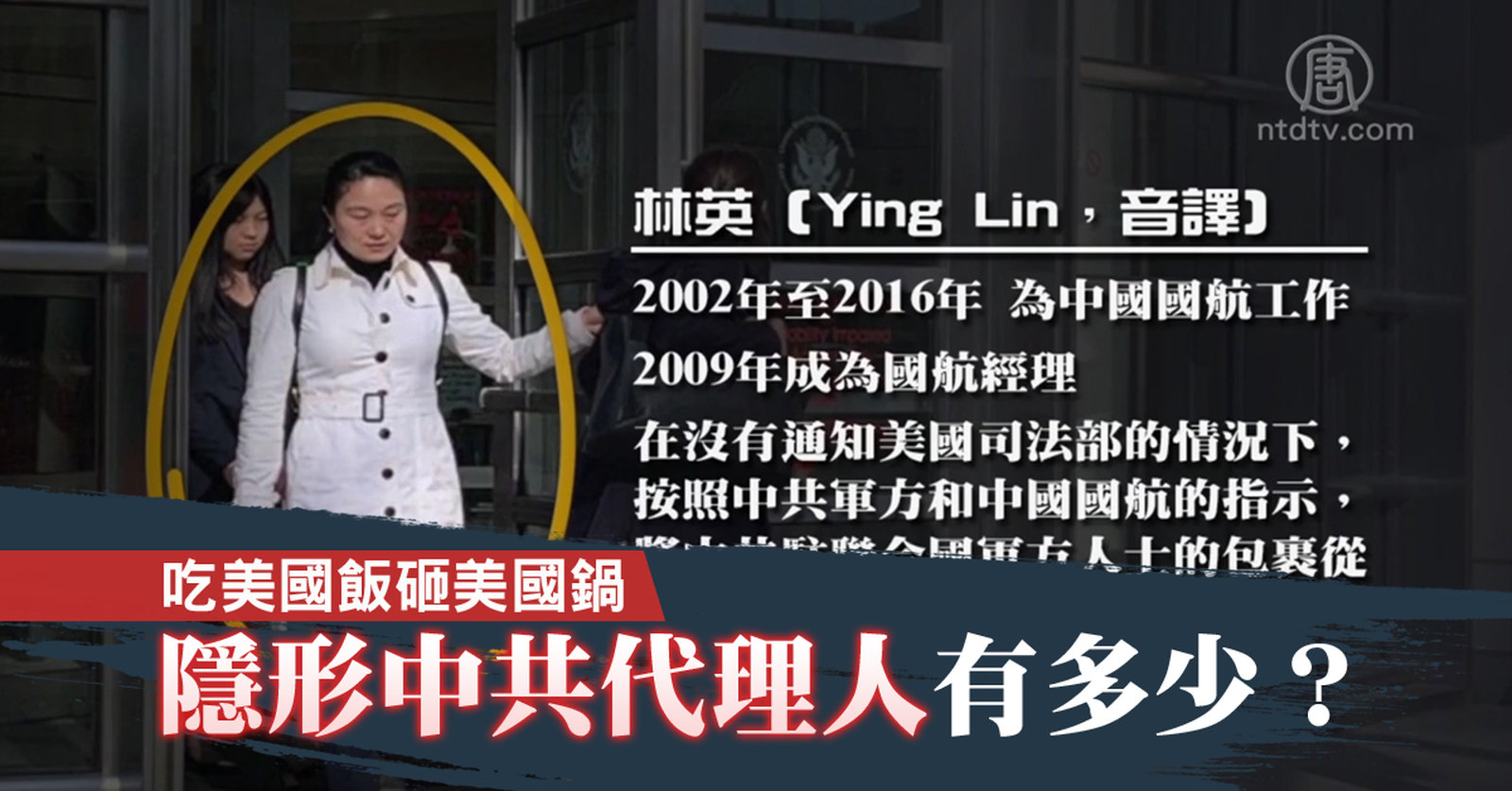 日前,中國國際航空經理林英,因幫助中共常駐聯合國代表團及駐紐約總領事館,將未經檢查的包裹走私回中國,將面臨最高10年刑期。目前有關中共代理人成為討論的話題,外界關注,充當中共代理人、被判有罪的華人還有哪些? //asset2.ntdtv.com.tw/public/uploads/assets/2019/04/23/2019-04-23-5cbf0f6c05e35.mp4 中國國際航空|林英|走私包裹|中共代理人|間諜|驅逐出境2019-04-23 21:08:37