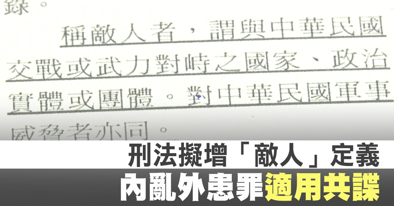 刑法擬增「敵人」定義 內亂外患罪適用共諜