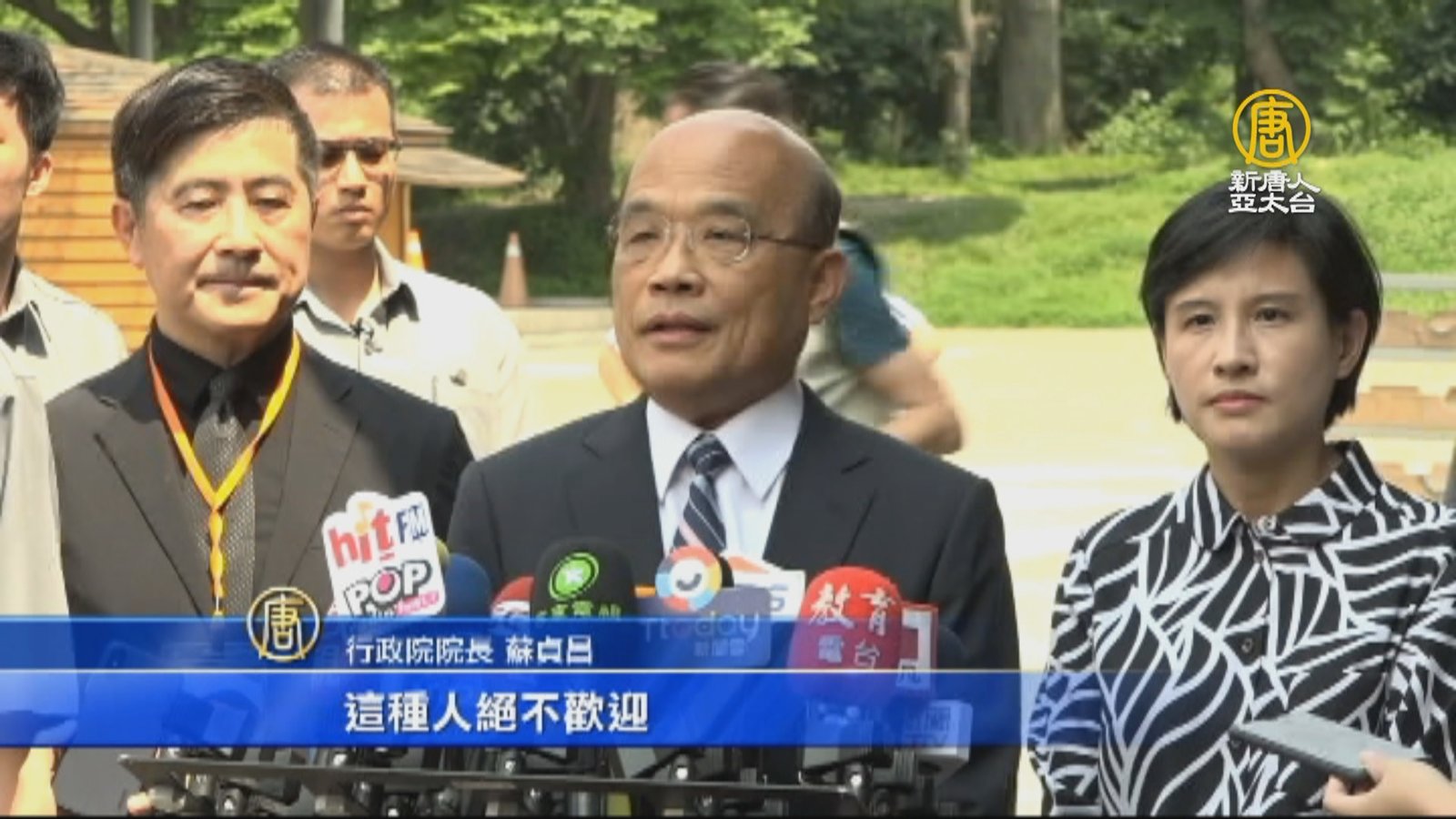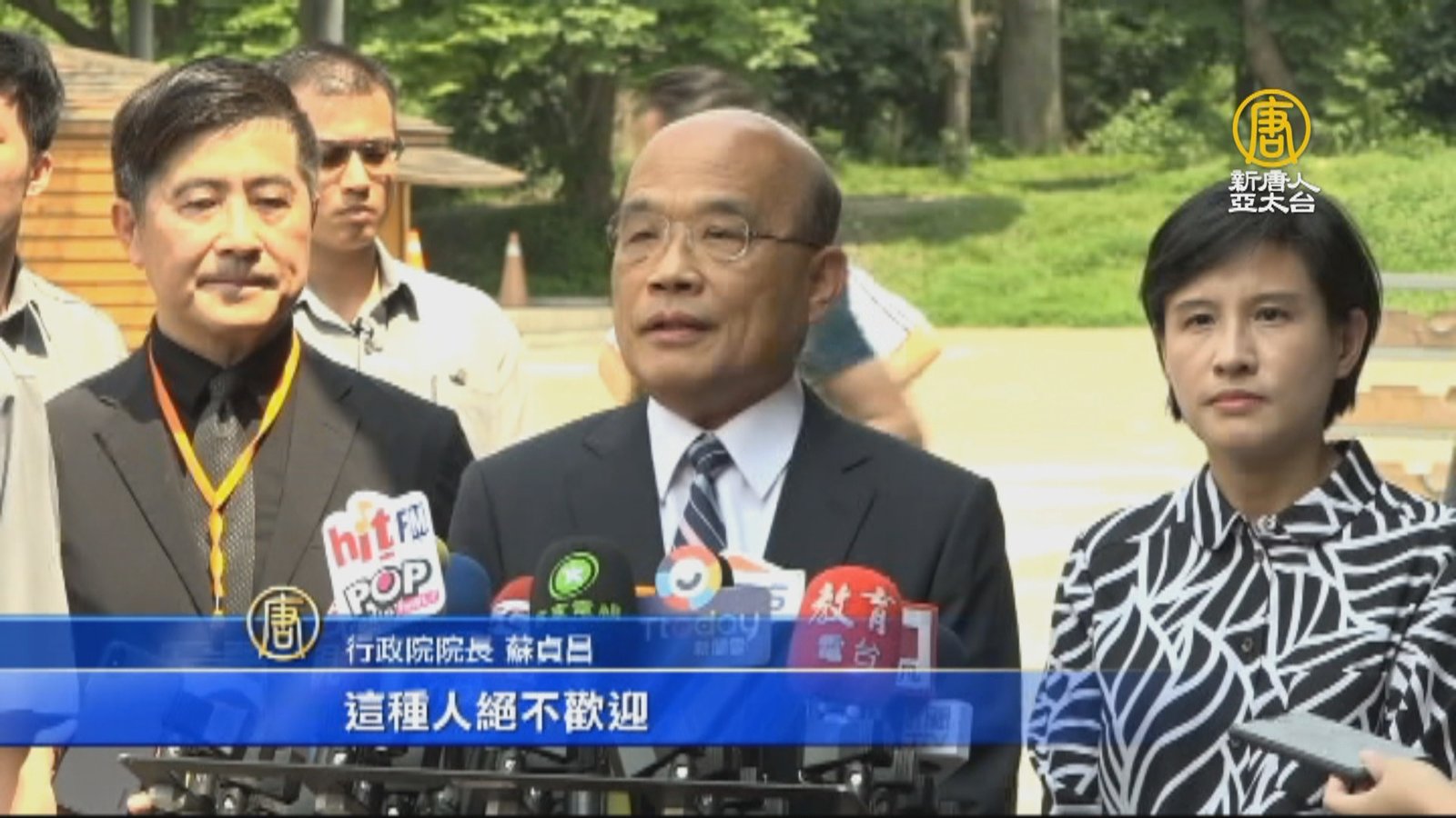 日前武統學者李毅,才被移民署驅逐離台,被認為是「武統宣講團」的旅美中國學者,也遭拒絕入境,並說要再次闖關。行政院長蘇貞昌受訪表示,台灣是自由民主開放的國家,但是絕對拒絕要宣布武統台灣、對台灣不友善的人,這種人絕不歡迎。 //asset2.ntdtv.com.tw/public/uploads/assets/2019/04/24/2019-04-24-5cc055d1dc446.mp4 蘇貞昌|武統學者|驅逐2019-04-24 20:22:15