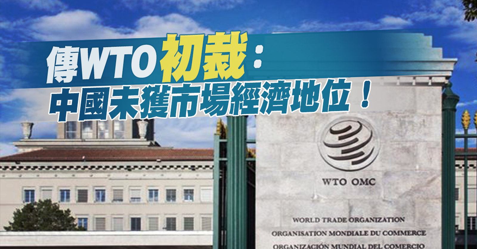 傳WTO初裁:中國未獲市場經濟地位!